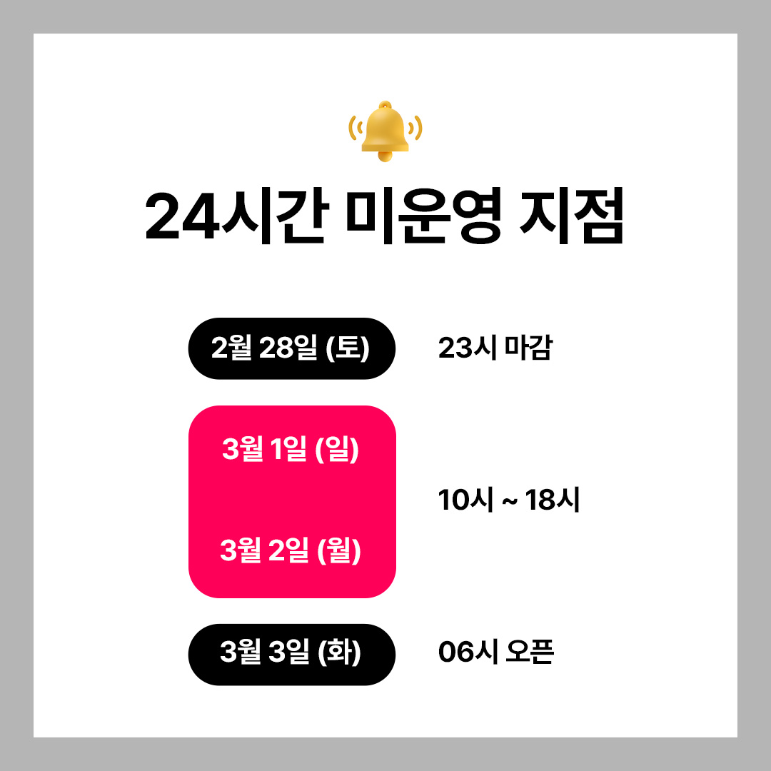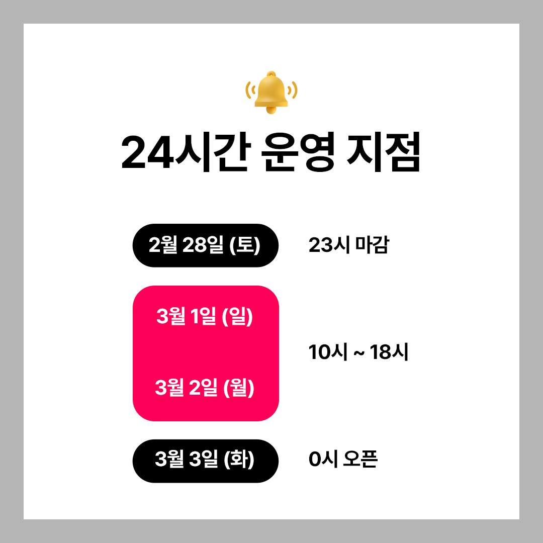 🔹 난곡점 : 3월 1일(일)~3/9(월) 18시까지 휴점 예정