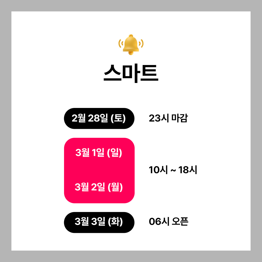 🔸 3월 3일(화) : 09시 오픈