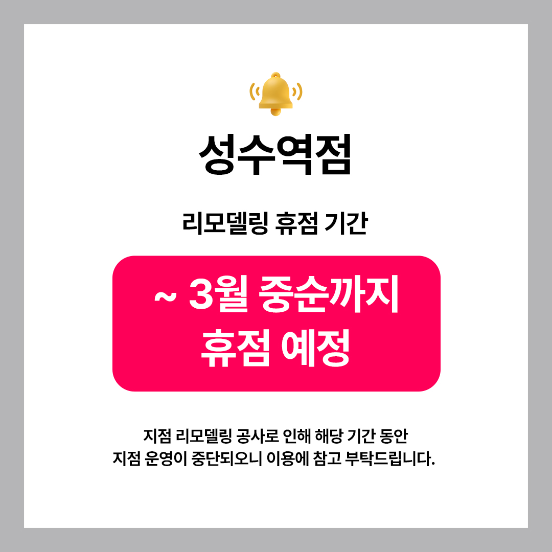 🔹 성수역점 : ~3월 중순까지 휴점 예정
