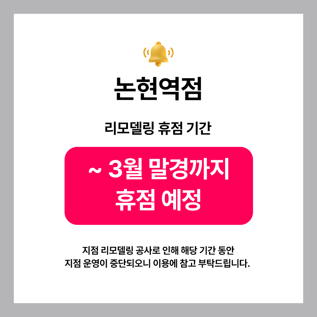 🔹 논현역점 : ~3월 말경까지 휴점 예정