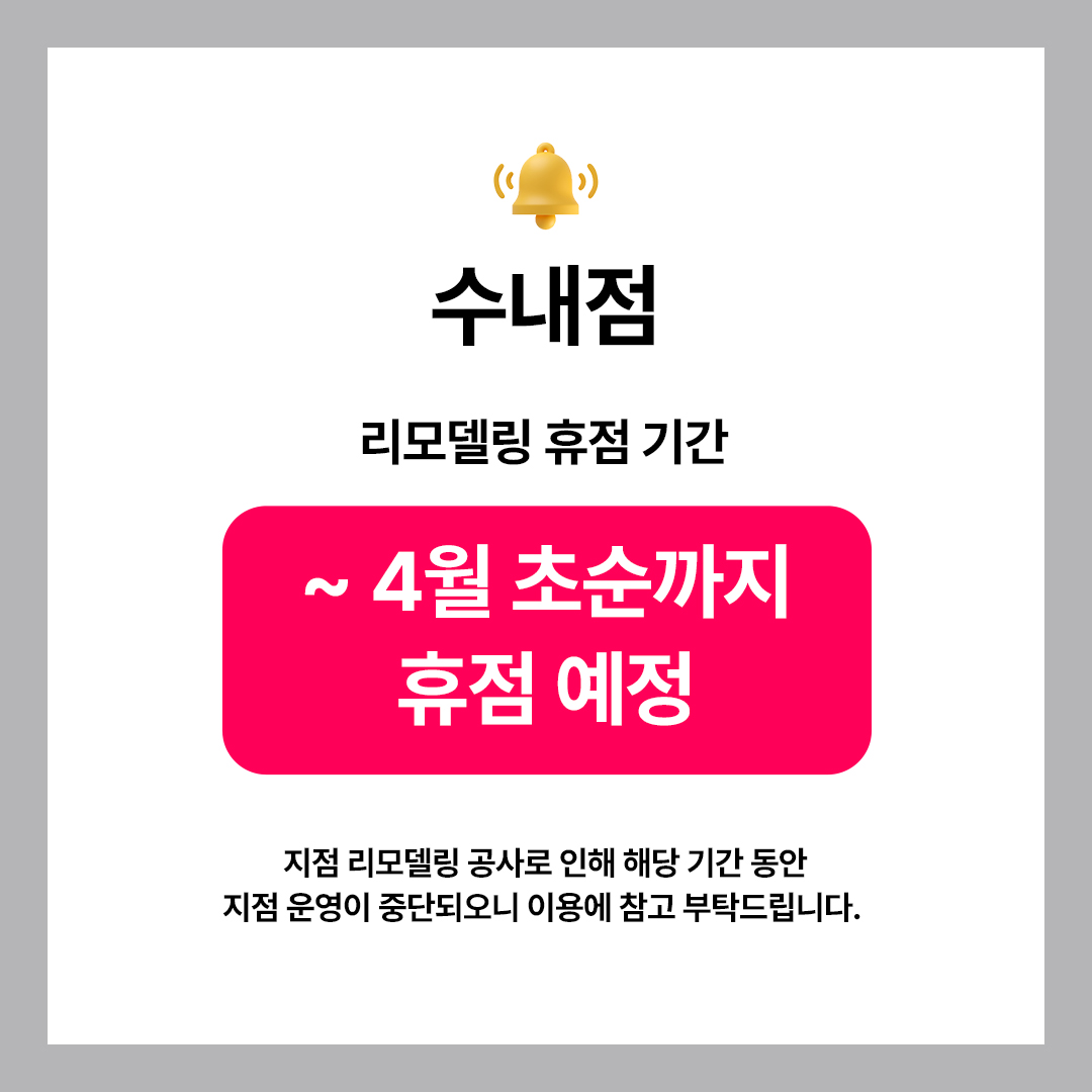 🔹 수내점 : ~4월 초순까지 휴점 예정